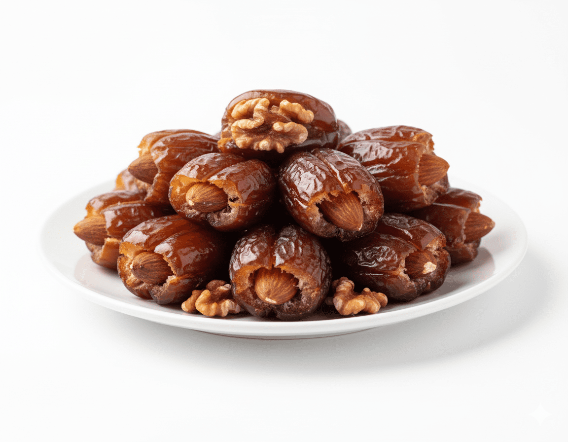 Egyptian dates are celebrated worldwide for their rich flavor, soft texture, and natural sweetness, and this traditional dessert highlights their exceptional quality. Each plump date is carefully stuffed with premium almonds or pistachios, creating a perfect harmony of sweetness and crunch.