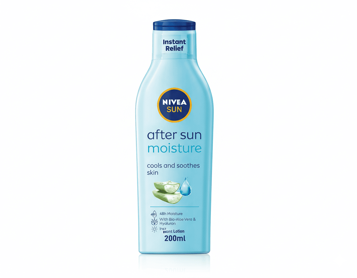 Soothe and refresh your skin after sun exposure with NIVEA SUN After Sun Lotion, enriched with aloe vera and avocado oil for deep hydration and care. This lightweight, non-sticky formula helps restore moisture lost from the sun, preventing dryness, peeling, and flaking, while leaving your skin feeling silky smooth and refreshed.