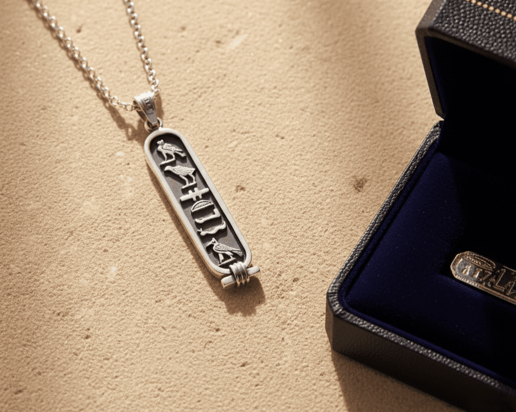 • Rich Symbolism: The cartouche — derived from the shen ring — symbolizes eternity, protection, and power, once reserved for pharaohs and royalty.