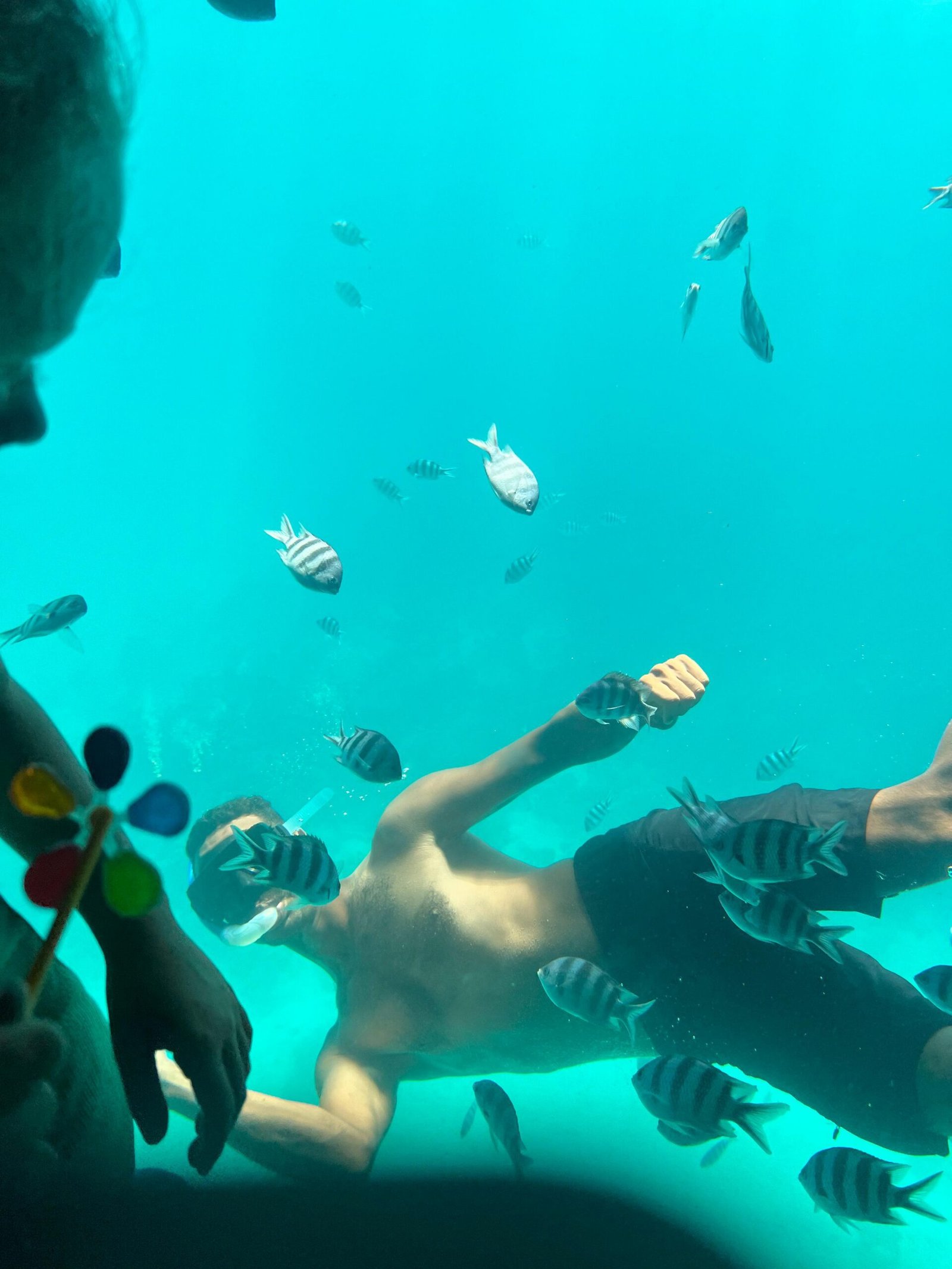 It goes down to around 5–6 meters below the surface for the best coral view.